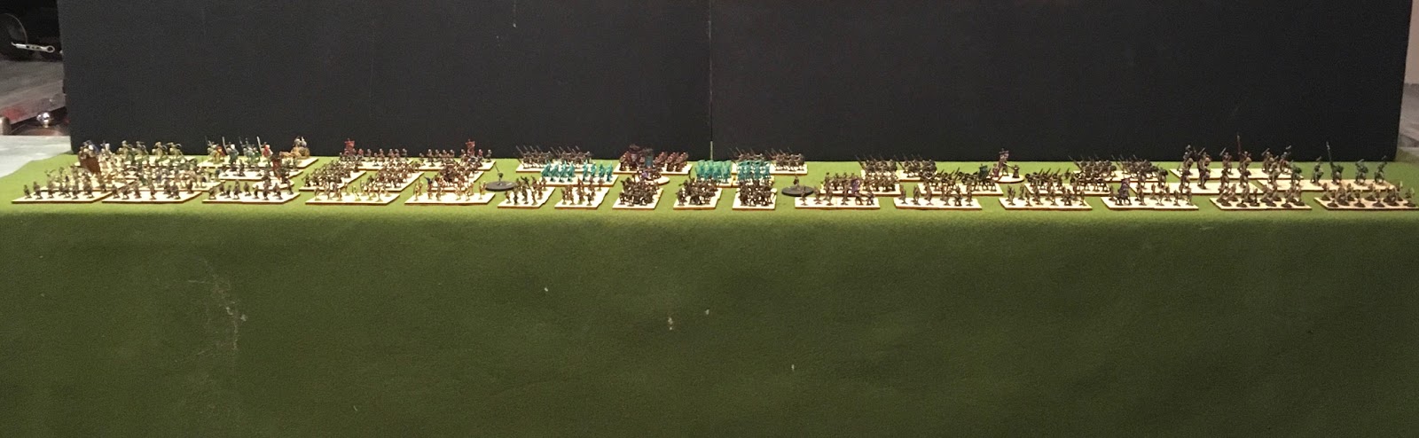 Another massive 15mm Demonworld Army. Over 50 units and command.Warriors, spears, bows, zombies, heavies, hvy cav, light cav, artillery, command, heroes and some specials. Not great pics but you can see the massiveness of it all. And these aren't recent, so there are another dozen not shown here.